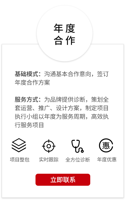 年度合作按兩種方式支付服務費:年付、半年付。提前15天支付下一個階段的費用。首筆款+1個月的誠信金。