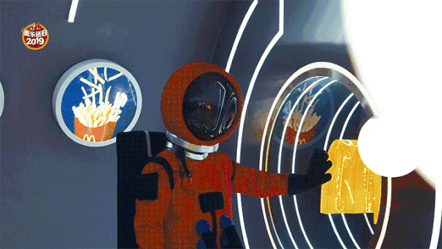 “淘寶造物節”期間,麥當勞攜手餓了么在退役的長征二號F火箭中,打造了全球首家以太空為主題的麥當勞餐廳。從布置、聲光影像到食品包裝設計,給消費者帶來奇思妙想的新體驗。